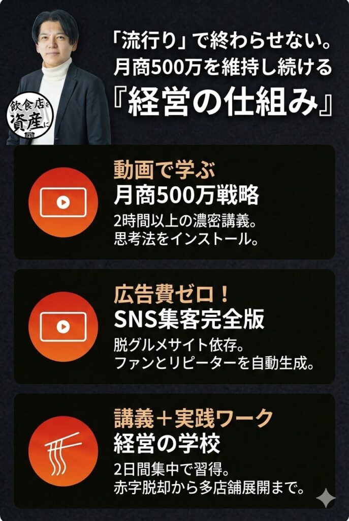 月商500万円以上を目指す飲食店向けオンライン動画講座はこちら